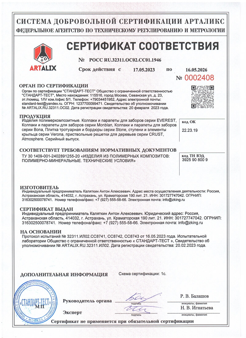 Сертификаты соответствия ZKING для Копейска